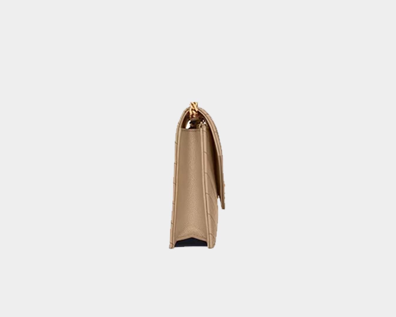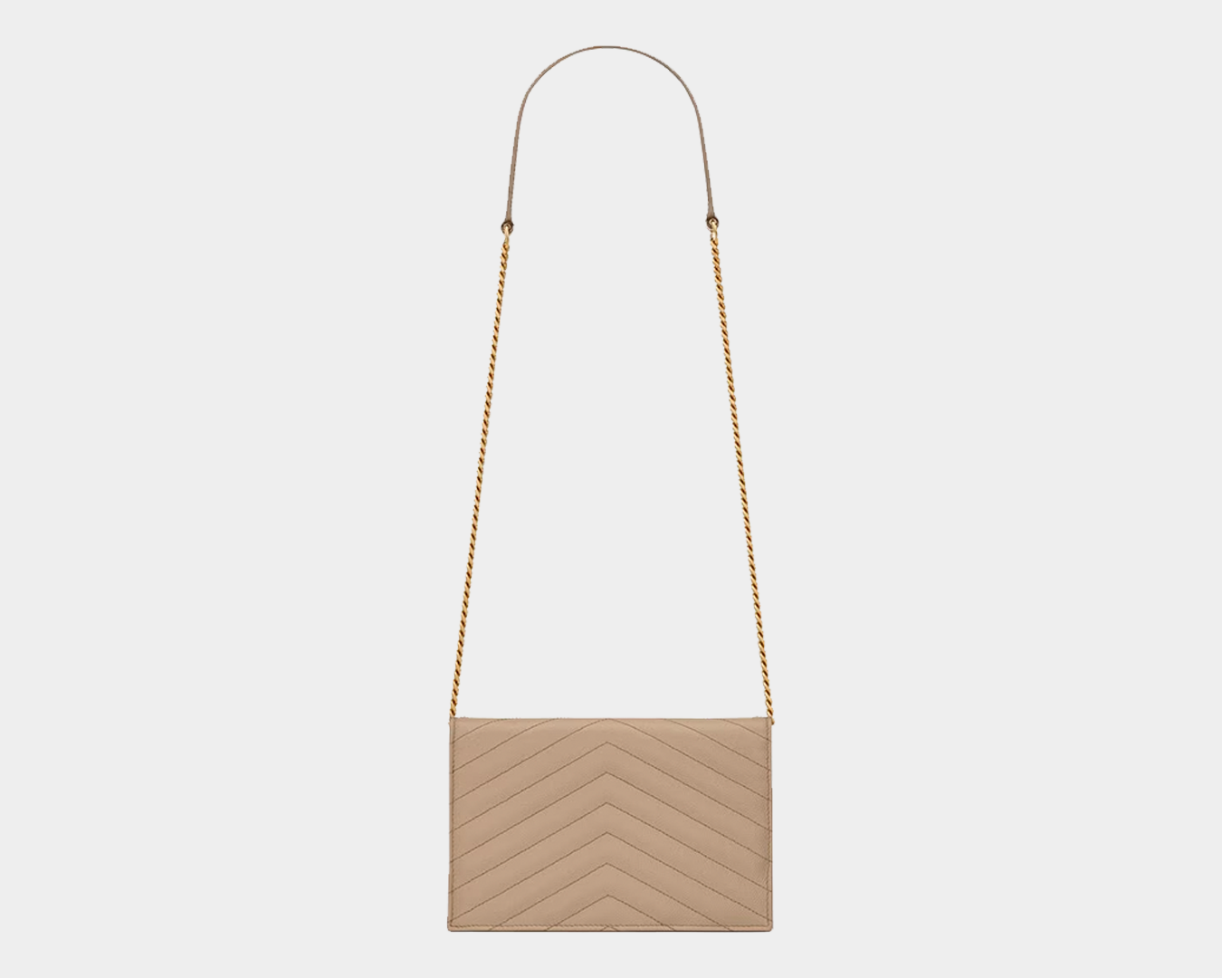 O pouch com corrente da Saint Laurent é a perfeita fusão de luxo compacto e praticidade atemporal. Confeccionado em suave couro de cordeiro com o icônico pesponto acolchoado em chevron, ele ostenta o inconfundível detalhe Cassandre em latão dourado. O design elegante é complementado por uma alça de corrente reforçada com couro, ideal para uso no ombro ou a tiracolo.