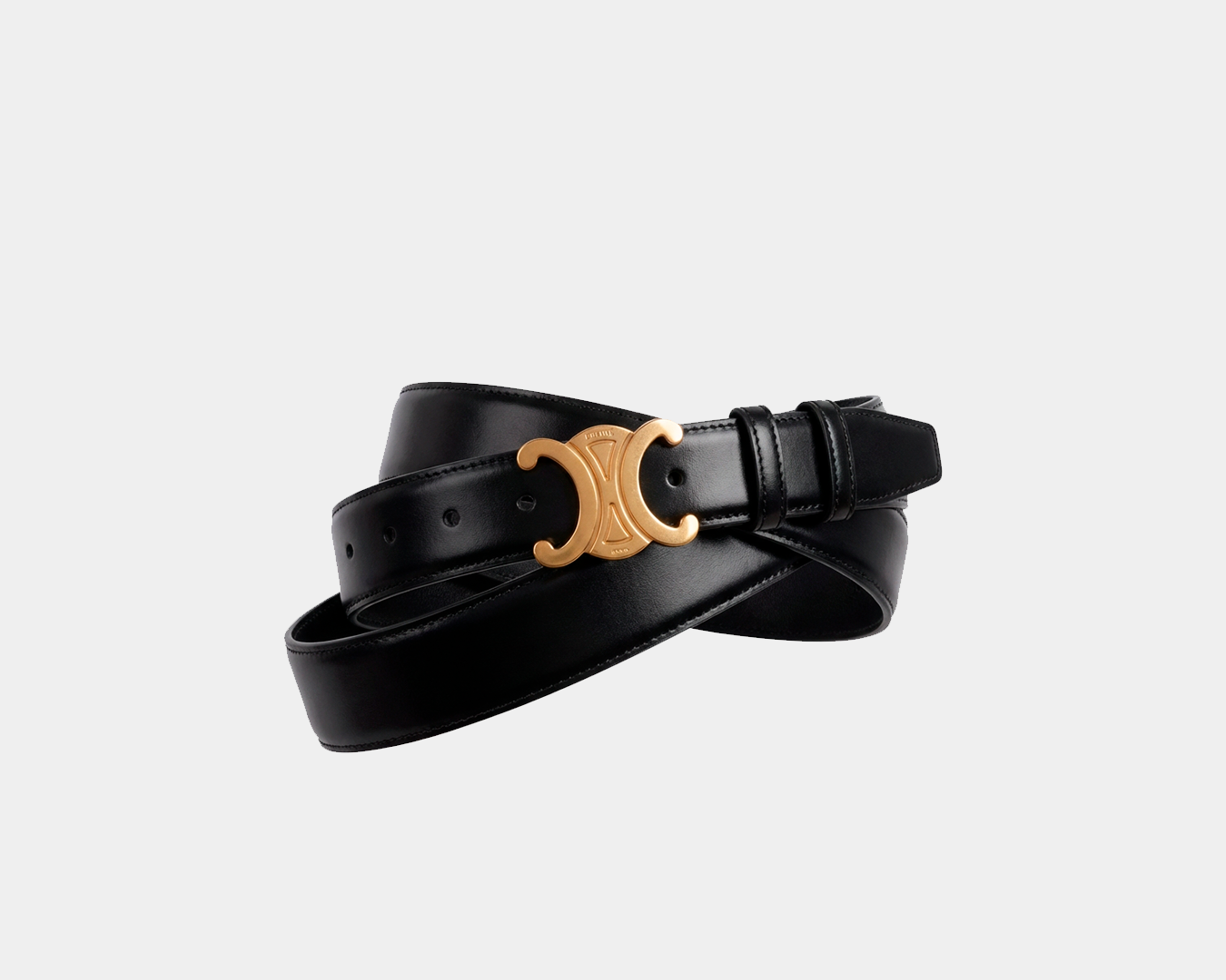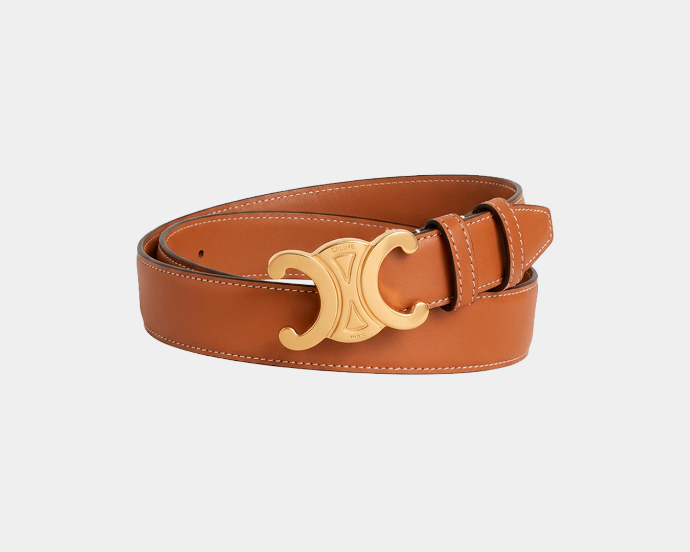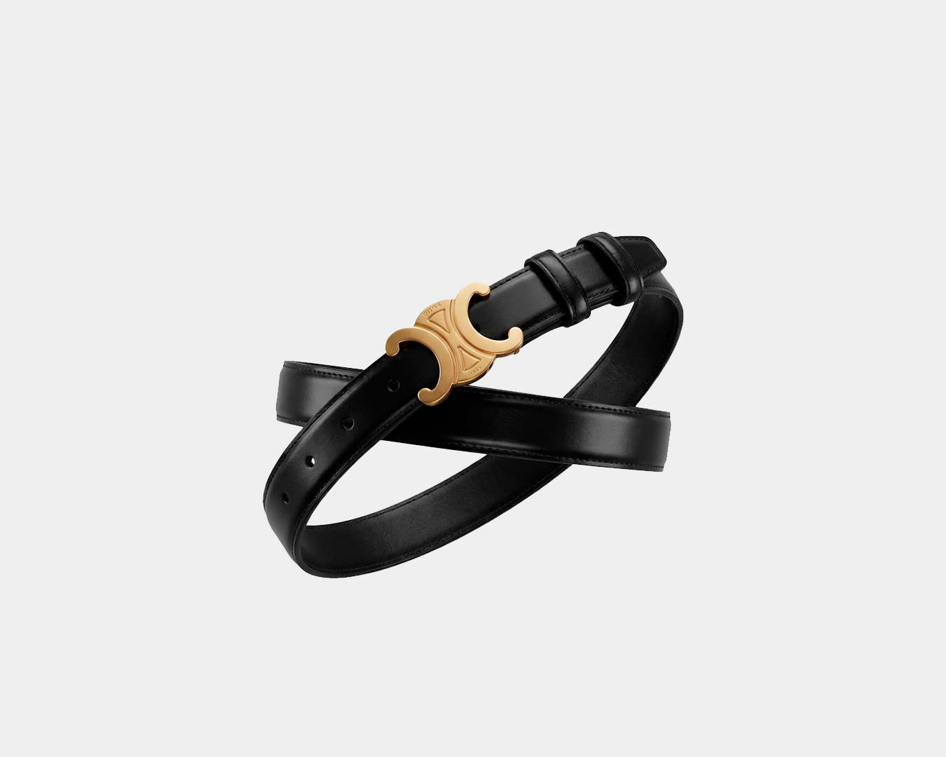 Cinto confeccionado em couro Taurillon, com forro em couro de bezerro, que garante maciez e durabilidade. O design de cintura média é finalizado com fivela Triomphe com pino, em acabamento dourado, conferindo elegância discreta e atemporal.