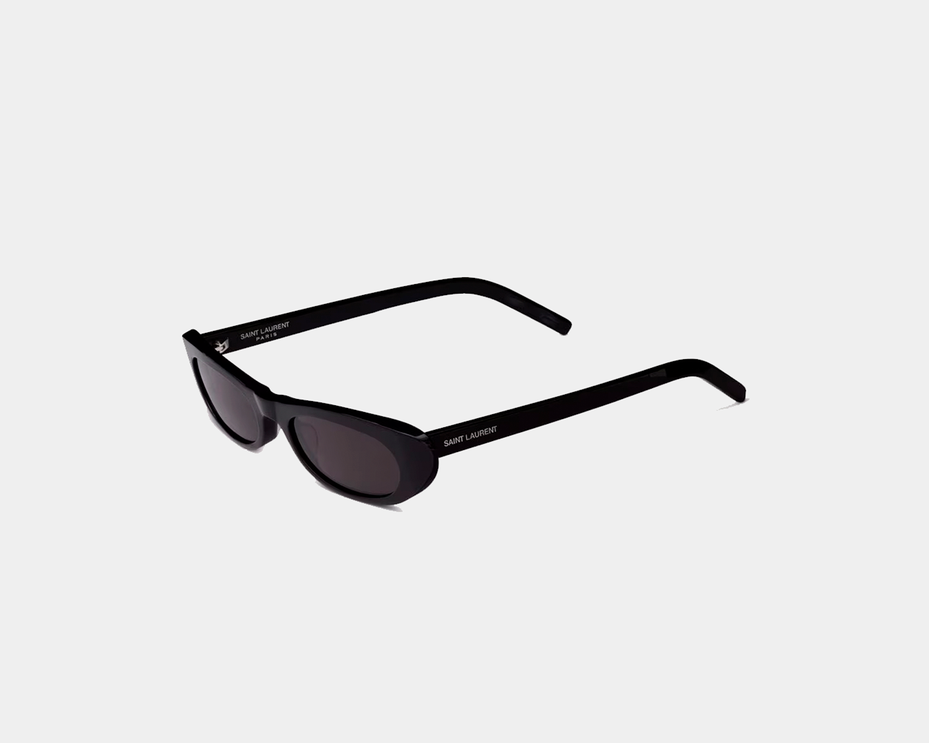 As hastes trazem a assinatura Saint Laurent gravada, reafirmando a sofisticação icônica da maison.
